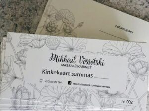 Müügil kinkekaardid nii massöör Mihhaili kui Päivi juurde.